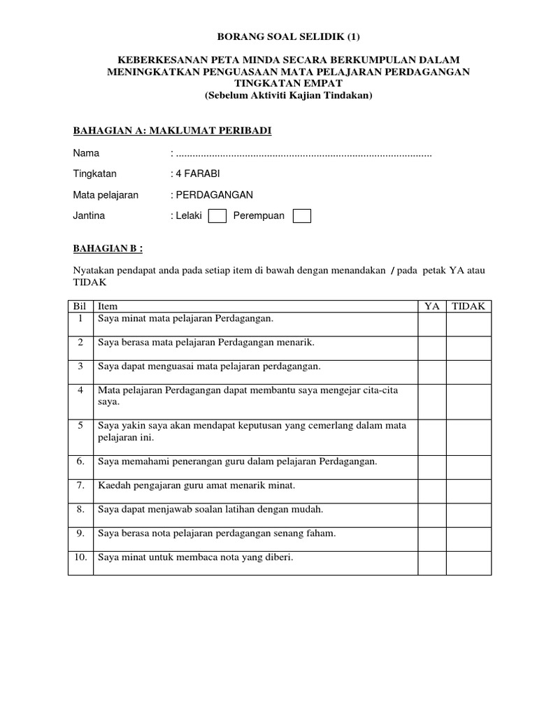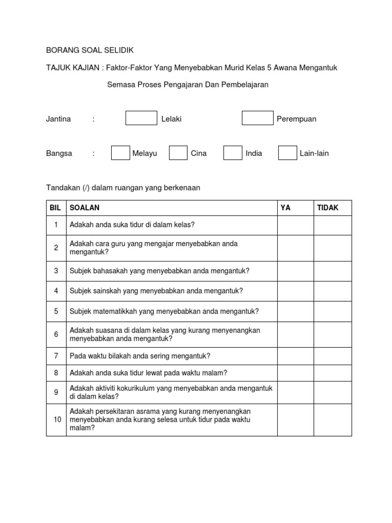 Contoh Borang Soal Selidik Pdf