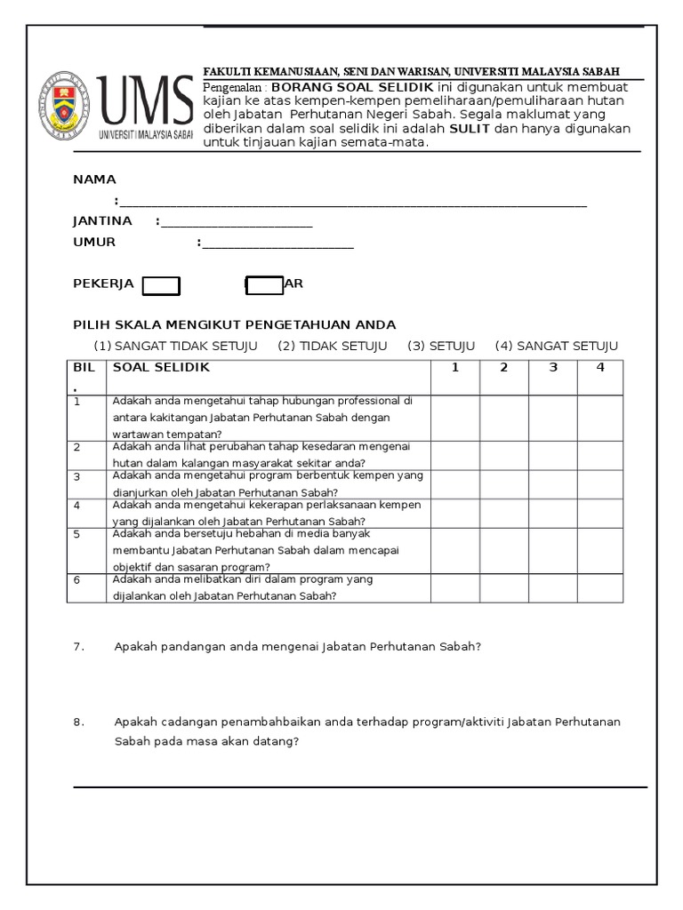 Borang Soal Selidik Pdf Sila tandakan dengan jujur dan ikhlas berdasarkan pandangan anda yang sebenar kerana maklumat yang anda berikan adalah amat berguna. Borang Kehadiran Mesyuarat Pdf Surat Rasmi Melawat Orang Sakit Format. Contoh borang spal selidik.
