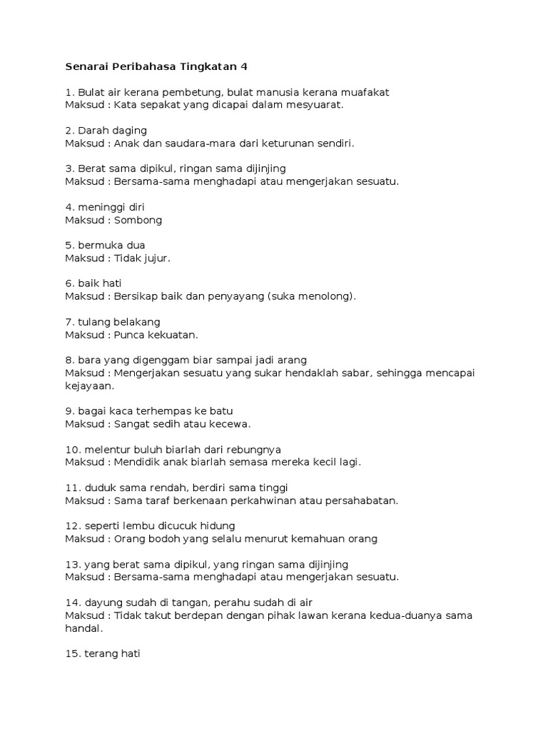 Senarai Peribahasa Tingkatan 4 Pdf